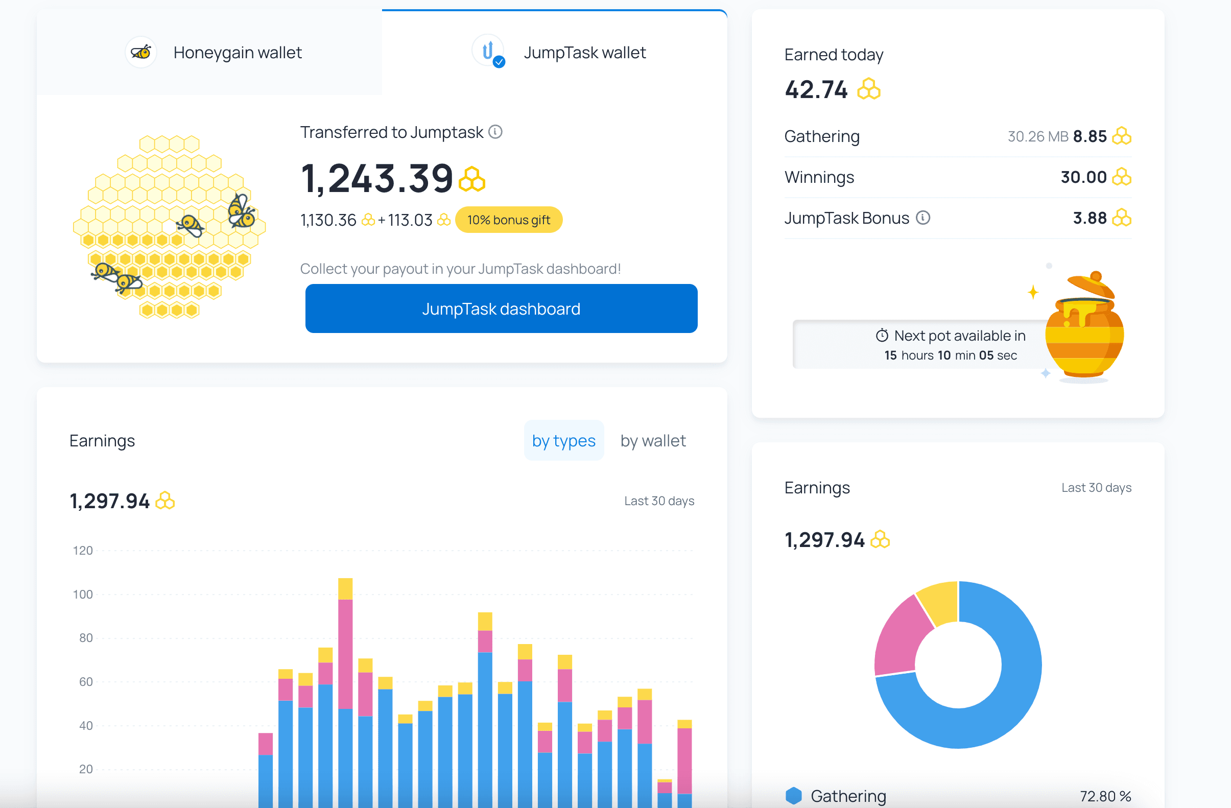Honeygain: a bandwidth sharing tool that easy to setup and Run, it’ll use your bandwidth & and IP tool to do some internet task form there customer, user can receive payout via PayPal Or Jumptask Crypto. As the estimation from their dashboard, user can earn uptown $1 for every 1Gb data share.